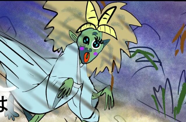 いざなきは、腐乱して面影もない妻のいざなみを見て、大慌てで逃げました。「覗いてはダメ」という約束を破ったいざなきにいざなみは怒ります。